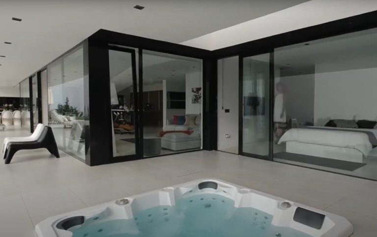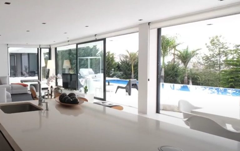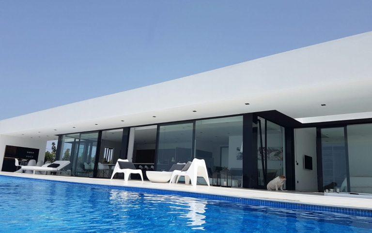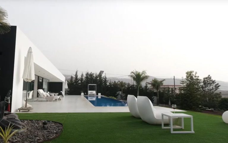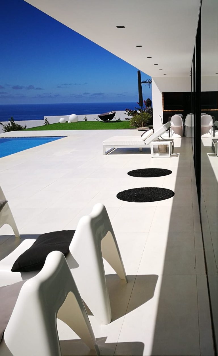 Su sencillo programa se desarrolla en un solo nivel, de planta diáfana y completamente abierta, donde el límite entre el interior y el exterior se difumina y se confunden bajo la sobra que proyecta el porche que preside la piscina que se integra en el paisaje y el propio horizonte del azul océano Atlántico.