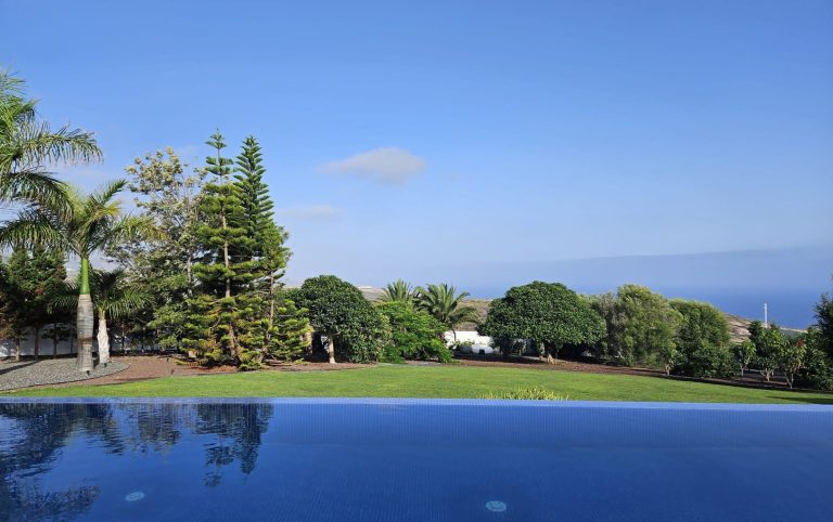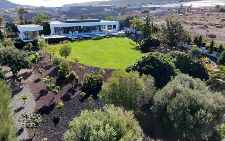En una parcela de 2.000 m2, la casa se ubica en su extremo sur con orientación de fachada a la costa norte de la isla de Gran Canaria.